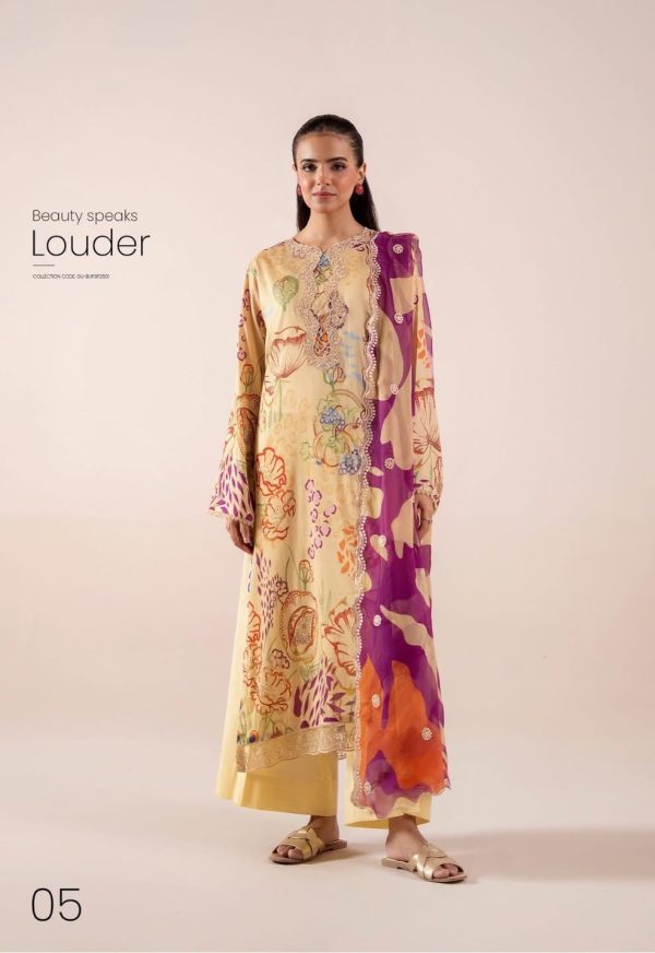 This unstitched collection allows you to customize the dress according to your own style and fitting. The design is modern, stylish, and perfect for women who love Pakistani fashion.